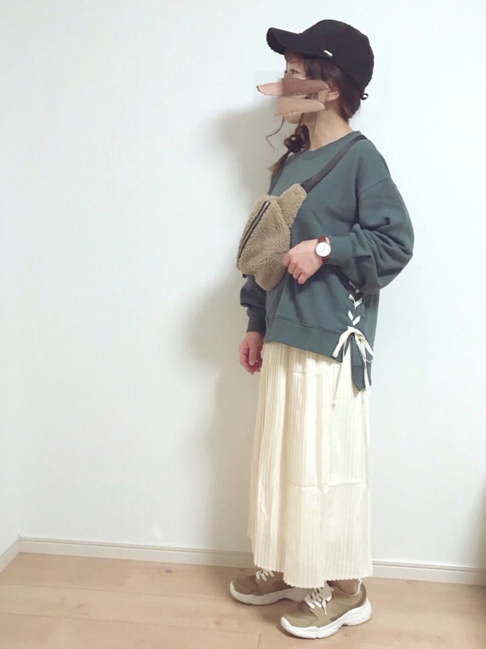 おはようございます(*´∀`) スカートのたたみじわ、 いつになったら取れるのかな?🤣 クロゼットのハンガーにかけてるだけじゃダメ?🤣 SALEでお買い得だった、 サイドレースアップのスウェットと プリーツスカートワンピのセット💓 別々でも着まわせるのに、3000円てお得すぎる🙌 今日はセットで着てみました🤗 アイテムからして、 甘くなっちゃうとやばい事になるので、 黒のキャップで甘さを抑えつつコーデ出来たかな、と🙉 ゆるっとおさげにすると、髪色が黒と茶のマーブルになって良い感じです😆←見えてないけど。 見てくださってありがとうございます🙇♀️💓