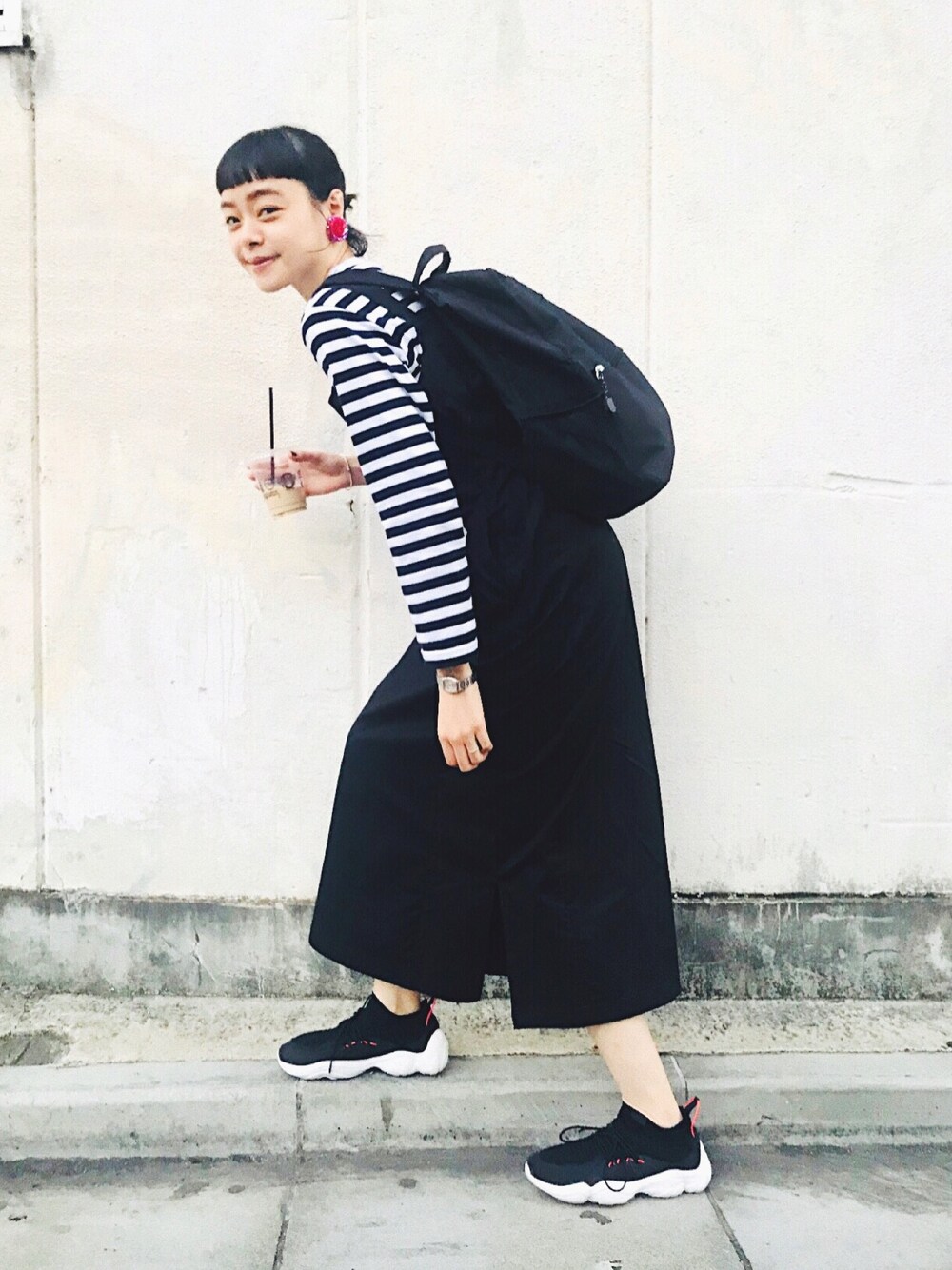 studioCLIPのリュック、 スタイリストの玄長さんとのコラボだそうで、 とーっても使いやすいよ。 耳元には、真っ赤なdesign sixのイヤリング🔴