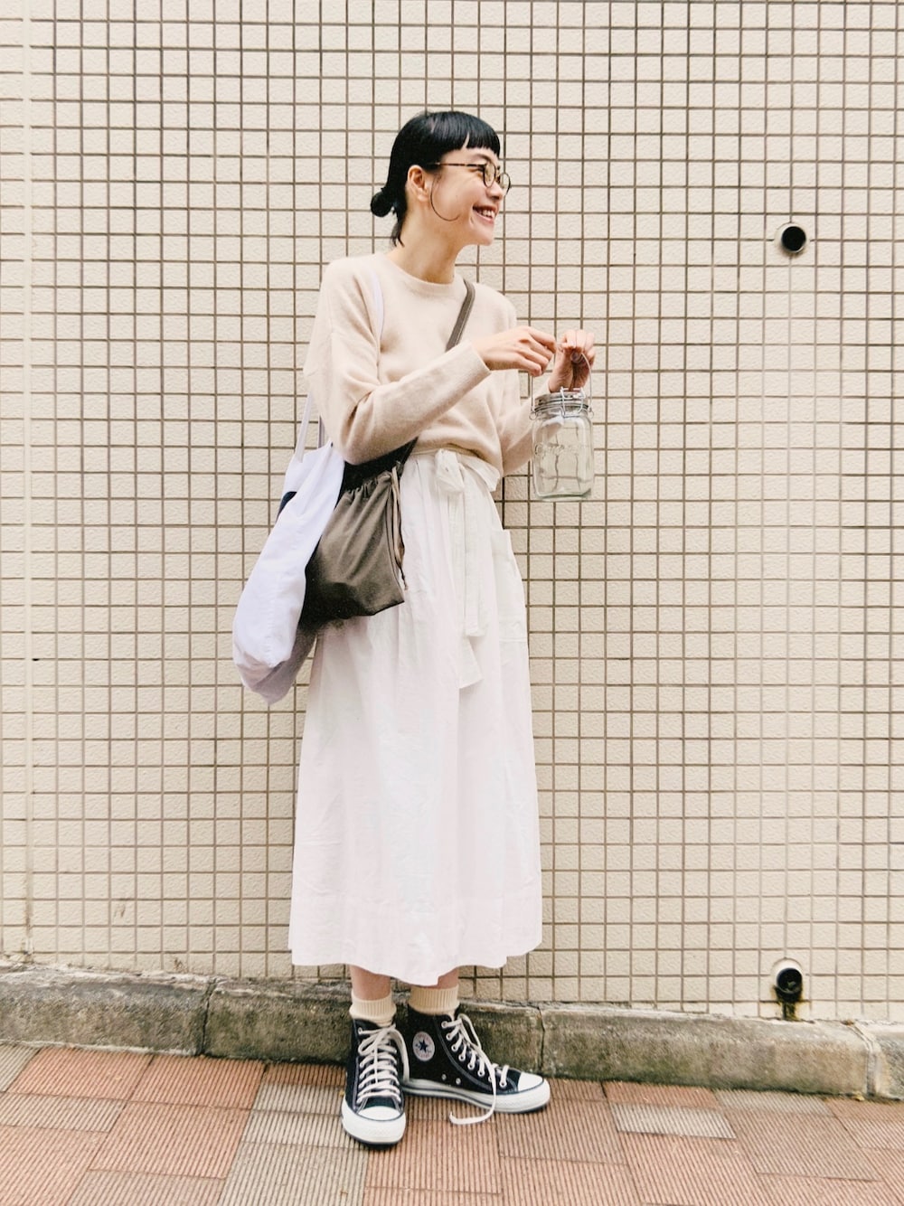 Kanocoのニット/セーター「ラウンドヘムヤックニット」を使ったコーディネート