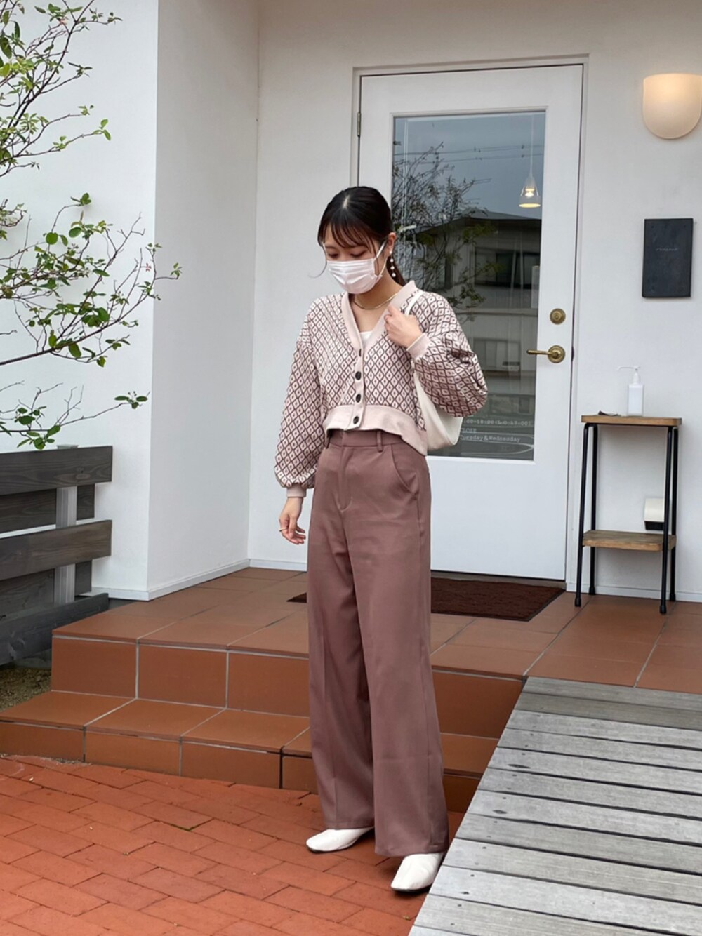 全身グレイルです!🐇 カーディガンはショート丈で袖にボリュームもあるので着痩せ効果抜群✨ 淡いブラウンに白の小物で締めると可愛くてまとまりのあるコーデになります!!🤎🤍 ハート、フォローまってます🥹😌