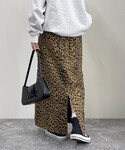 ◎ニット ふわふわのカーディガン。 柔らかい素材で軽く、全然チクチクしないので、着心地抜群です! くすんだゴールドのボタンがポイント。 アームホールはゆったりとしているので、インナー厚着できます!羽織りとしても◎ ◎スカート 秋に取り入れたいアニマル柄! シルエットがきれいなスカートです。 台形なので、身体のラインを拾わない点が嬉しい!シーズンレスで使える素材です。 ハリがある素材ですが、軽い履き心地です!