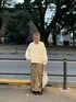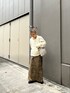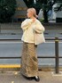 ◎ニット ふわふわのカーディガン。 柔らかい素材で軽く、全然チクチクしないので、着心地抜群です! くすんだゴールドのボタンがポイント。 アームホールはゆったりとしているので、インナー厚着できます!羽織りとしても◎ ◎スカート 秋に取り入れたいアニマル柄! シルエットがきれいなスカートです。 台形なので、身体のラインを拾わない点が嬉しい!シーズンレスで使える素材です。 ハリがある素材ですが、軽い履き心地です!