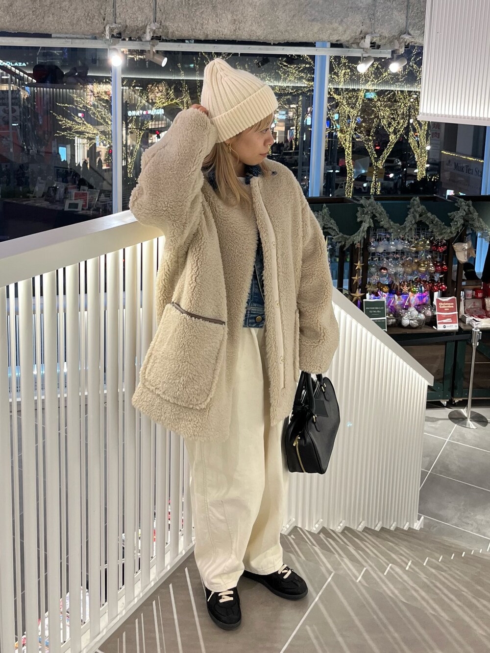 KANOKO(FG women's EC)のノーカラーコート「ボアミドル丈コート」を使ったコーディネート