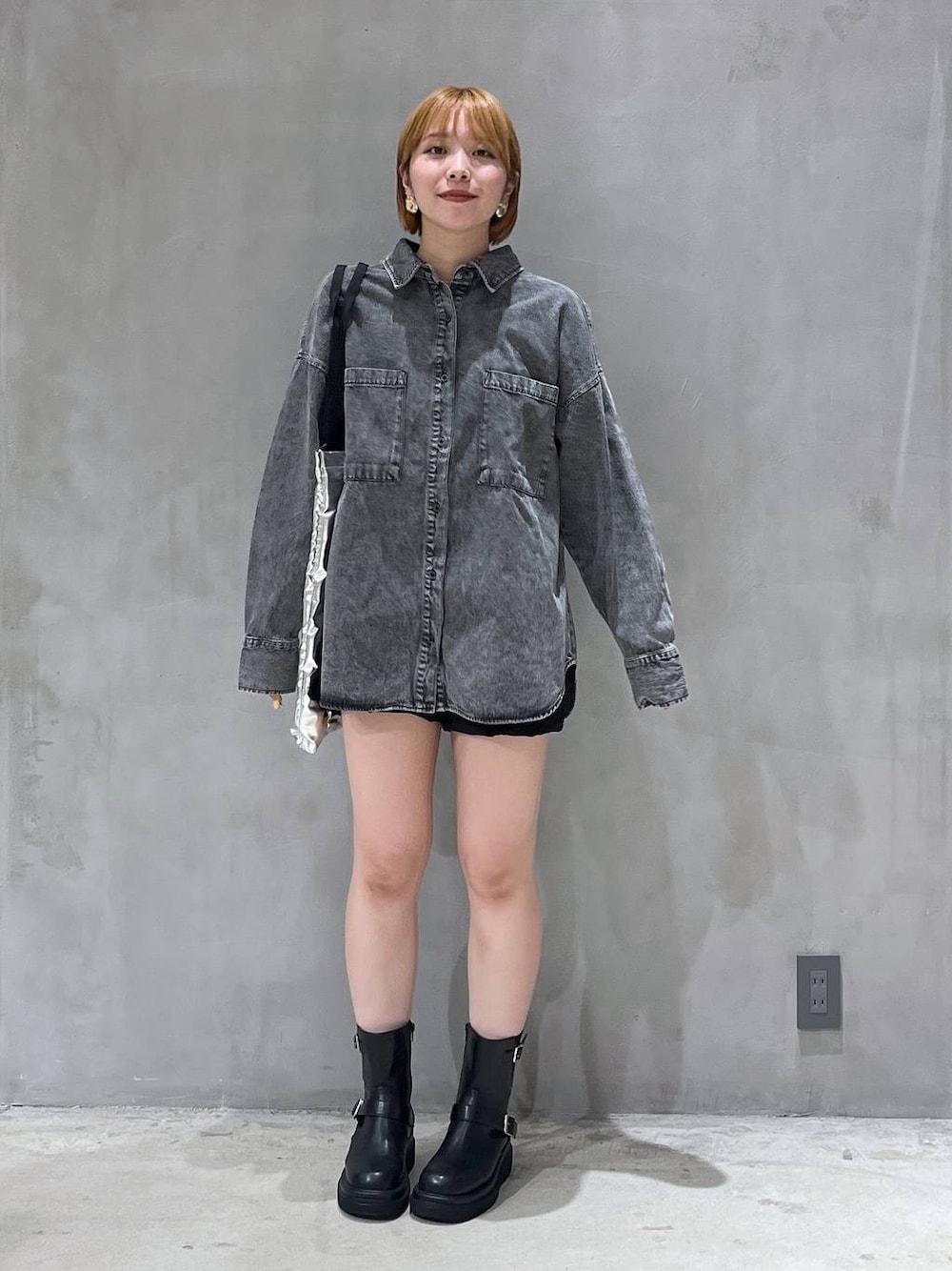 デニムシャツコーデ① トップスF ボトムスS デニムシャツ入荷してます〜 ミニワンピ風に着たかったので、ハーフパンツの裾を折って着てます! デニムやっぱり可愛い😫😫