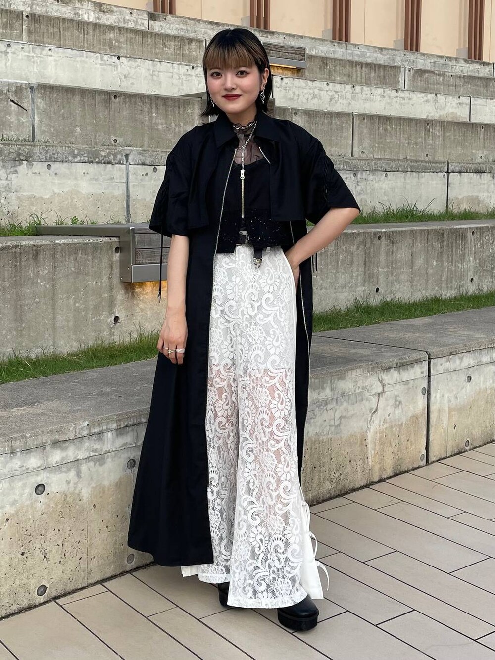 Instagramも日々更新しています🐼🎀 →@__kanon_20 ●ワンピース 袖のリボンデザインで可愛らしさありつつ、ジップでカジュアルさもある万能ワンピースなんです!ジップだからこそ前開けもしやすいです! 149cmの私でも靴無し床につかない長さでした!写真は10.8cmヒールを履いて着用してます! ●パンツ トレンドアイテムなスリムレースパンツ。白は特にコーデのワンポイントとして使いやすいです!1分丈程のペチコート付きなのでインナーが透けることもないです! 149cmの私で7cmあれば床につかず履ける長さでした!写真は10.8cmヒールを履いて着用してます! ●トップス シャツとビスチェがセットの商品のビスチェのみを使用しています!
