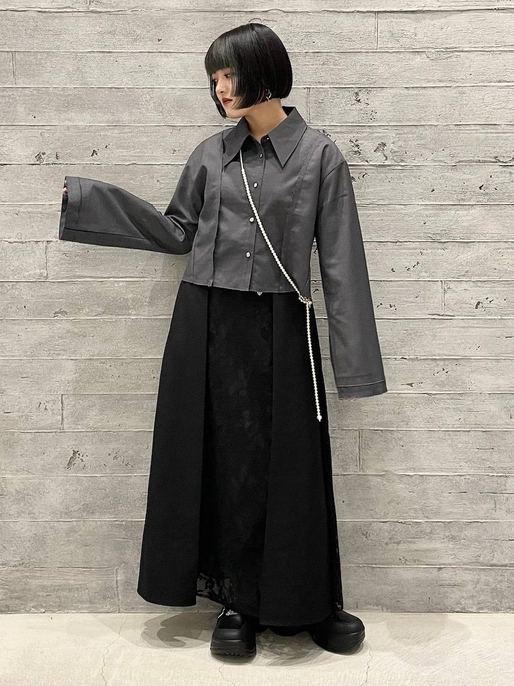 Instagramも日々更新しています🐼🎀 →@__kanon_20 シャツの切り替えラインとスカートの切り替えラインがぴったりで運命感じたコーデ!✨💫 スカート丈は149cmの私でも靴無し床につかない長さでした!写真は7.6cmヒールを履いて着用してます!