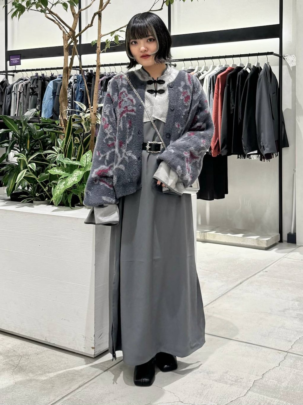 Instagramも日々更新しています🐼🎀 →@__kanon_20 グレーのワンピースにグレーのカーディガン羽織りかわいい!!