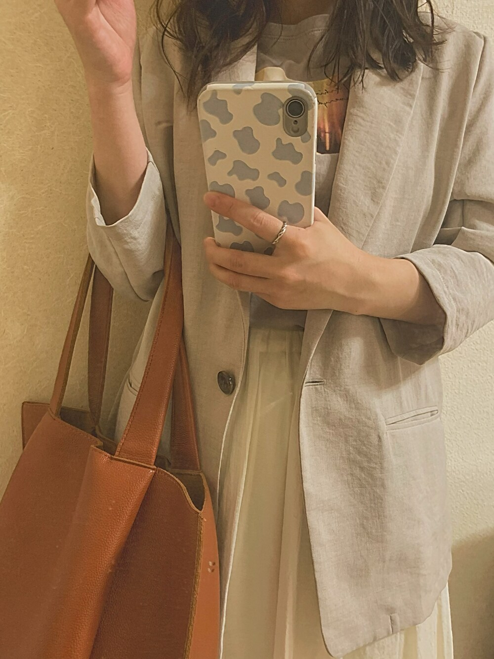 前の骨スト低身長コーデ☕️ 骨格ストレートやから、フレアスカートで お尻🍑目立たんようにジャケットで iライン作ったらいい感じになった