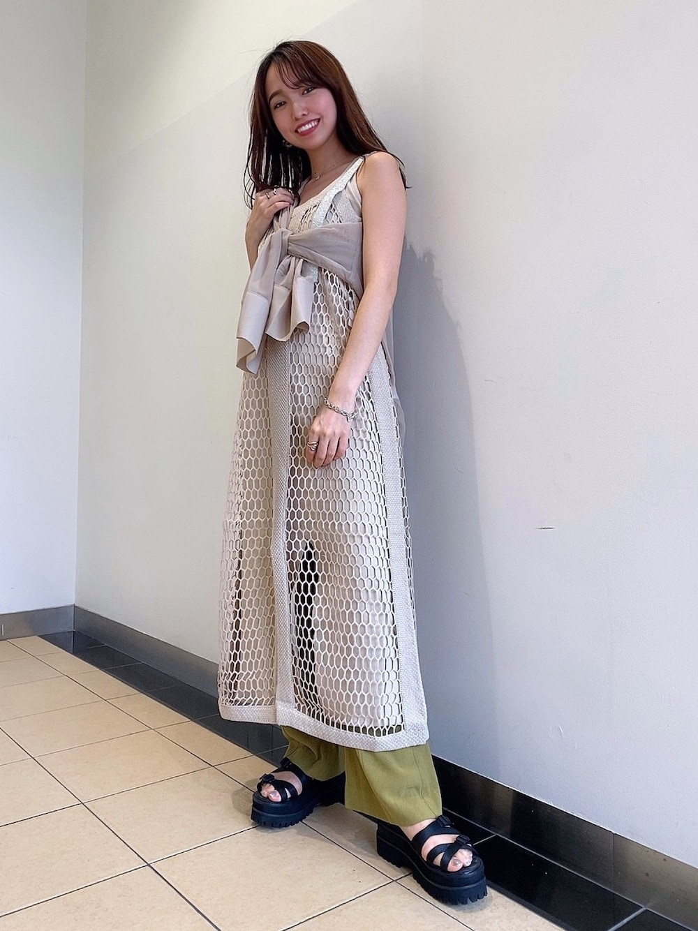 かのん(JEANASIS ららぽーとTOKYO-BAY)のワンピース「クラフトネット2Pノースリーブワンピース/935448」を使ったコーディネート