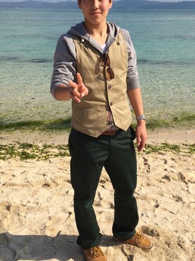 「時計(アナログ腕時計、グレー系)」を使った、ファッションモンスターさん(メンズ)の夏コーディネート