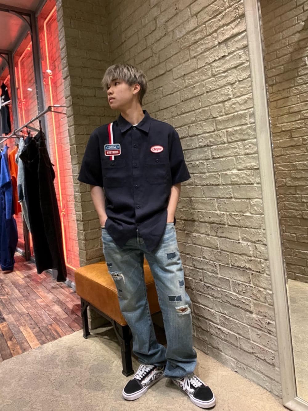 KANTA(HYSTERIC GLAMOURアミュプラザ博多店)のデニムパンツ「スクエアウインドウリメイク スリムストレートデニムパンツ」を使ったコーディネート
