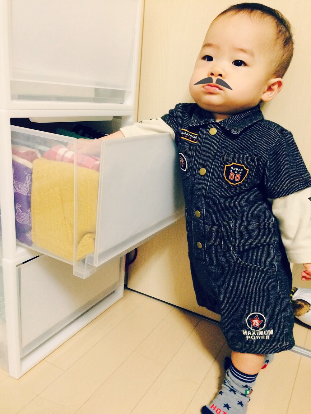 つなぎ風のロンパース☺︎ ハーパンに靴下ってなんかかわいい♡