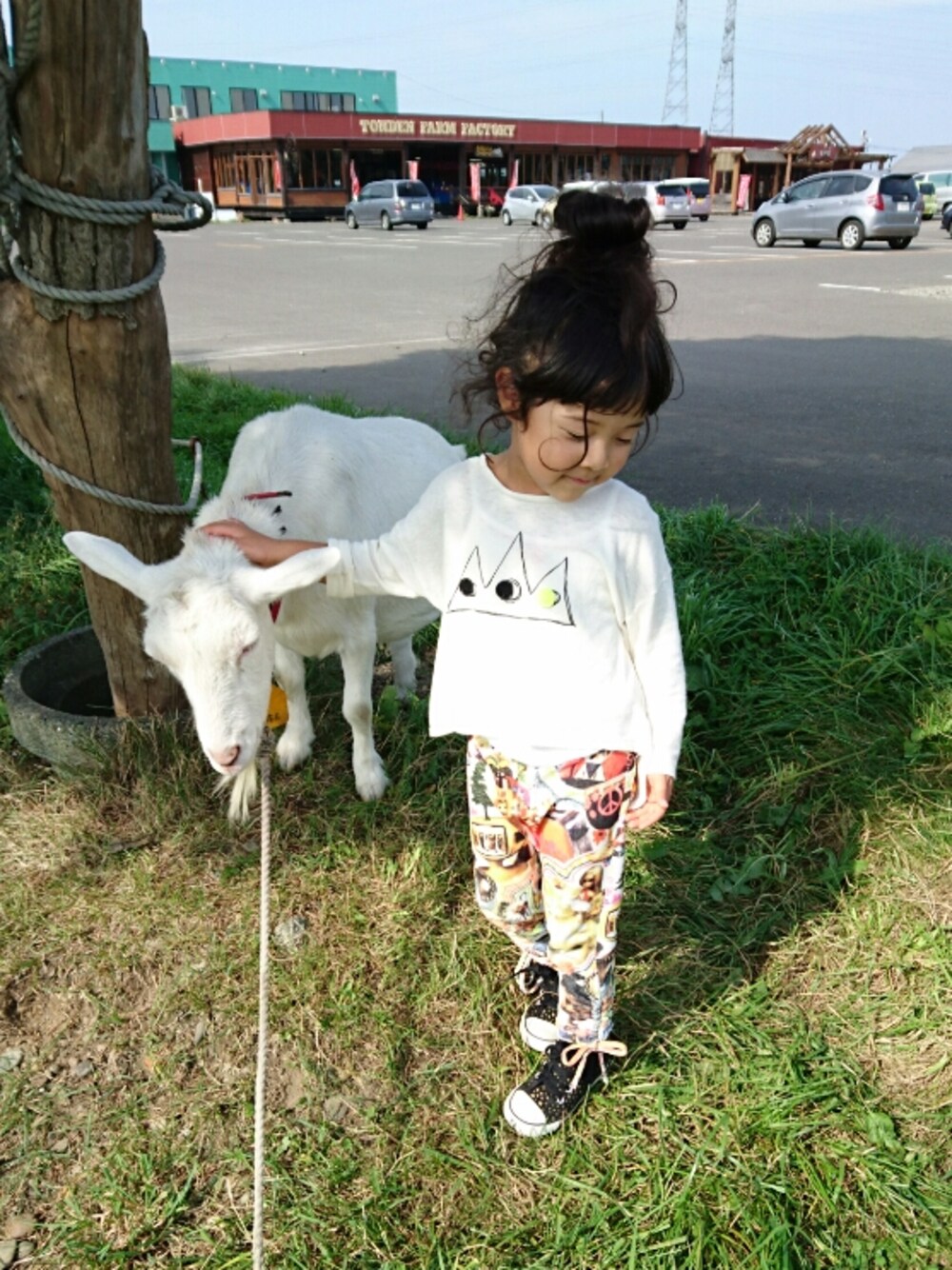 ムチャチャのパンツはよく見ると、ちょっとコワイ( ´・ω・`) やぎさんに餌をあげてご満悦♥