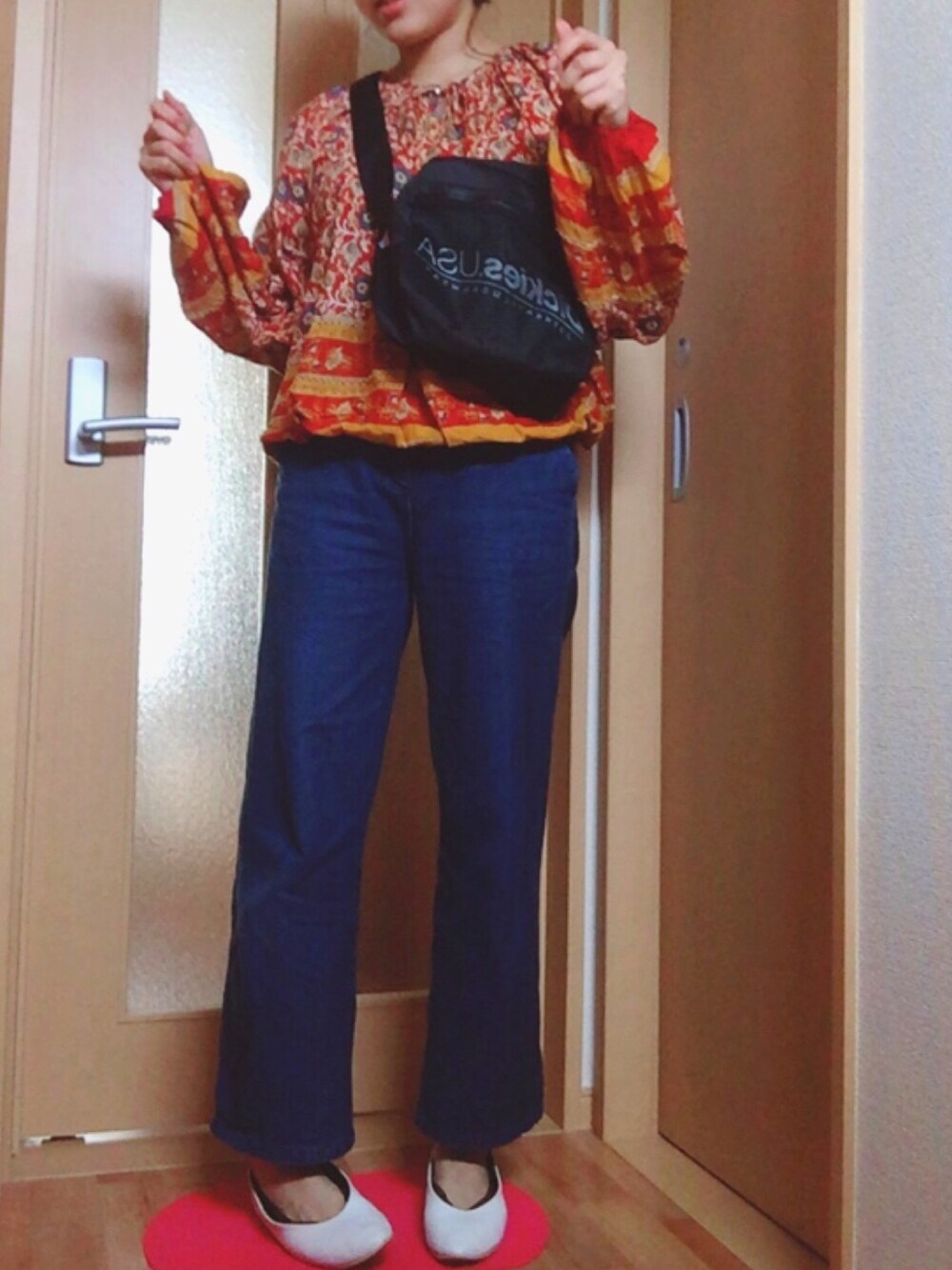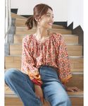 k a n a ‥❁のシャツ/ブラウス「ボリュームスリーブ総柄プリントブラウス」を使ったコーディネート