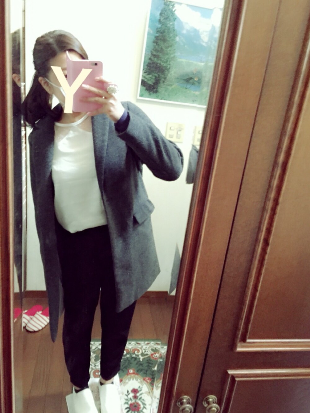 おはようございます! いつもありがとうございます🙇 絶賛マスク通学です(笑) 予防です!電車こわいから😷(笑) なんかアウター着ないで撮れば 良かったな〜!中にはネイビーの カーディガン着ました💓 学校のときは安定にリュック!