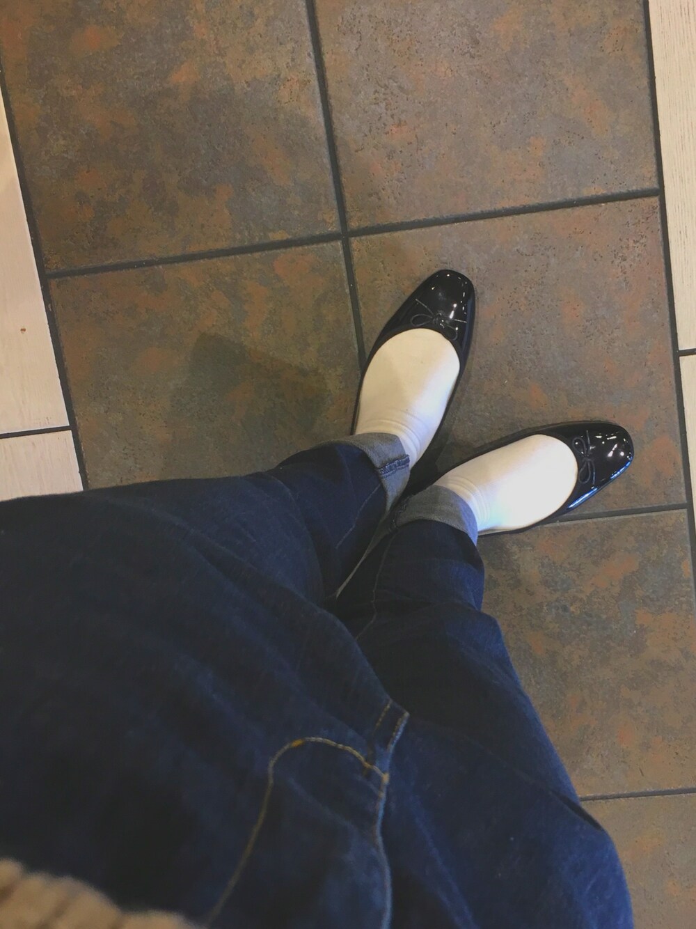 〜 . 今日の足元☺︎ 黒のバレエシューズには白靴下でしょ!❤︎ .