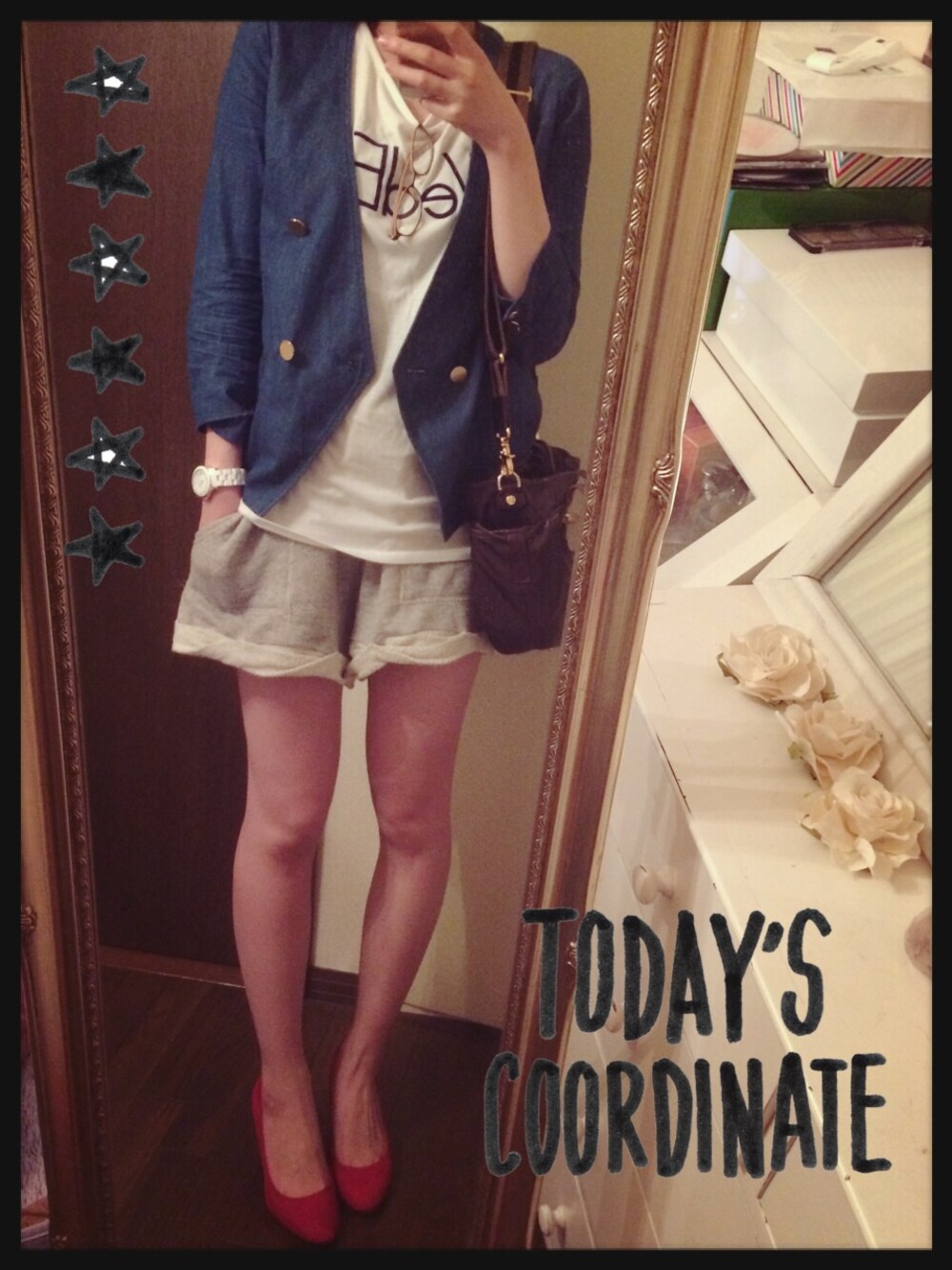カービィのデニムジャケット「デニムノーカラージャケット」を使ったコーディネート