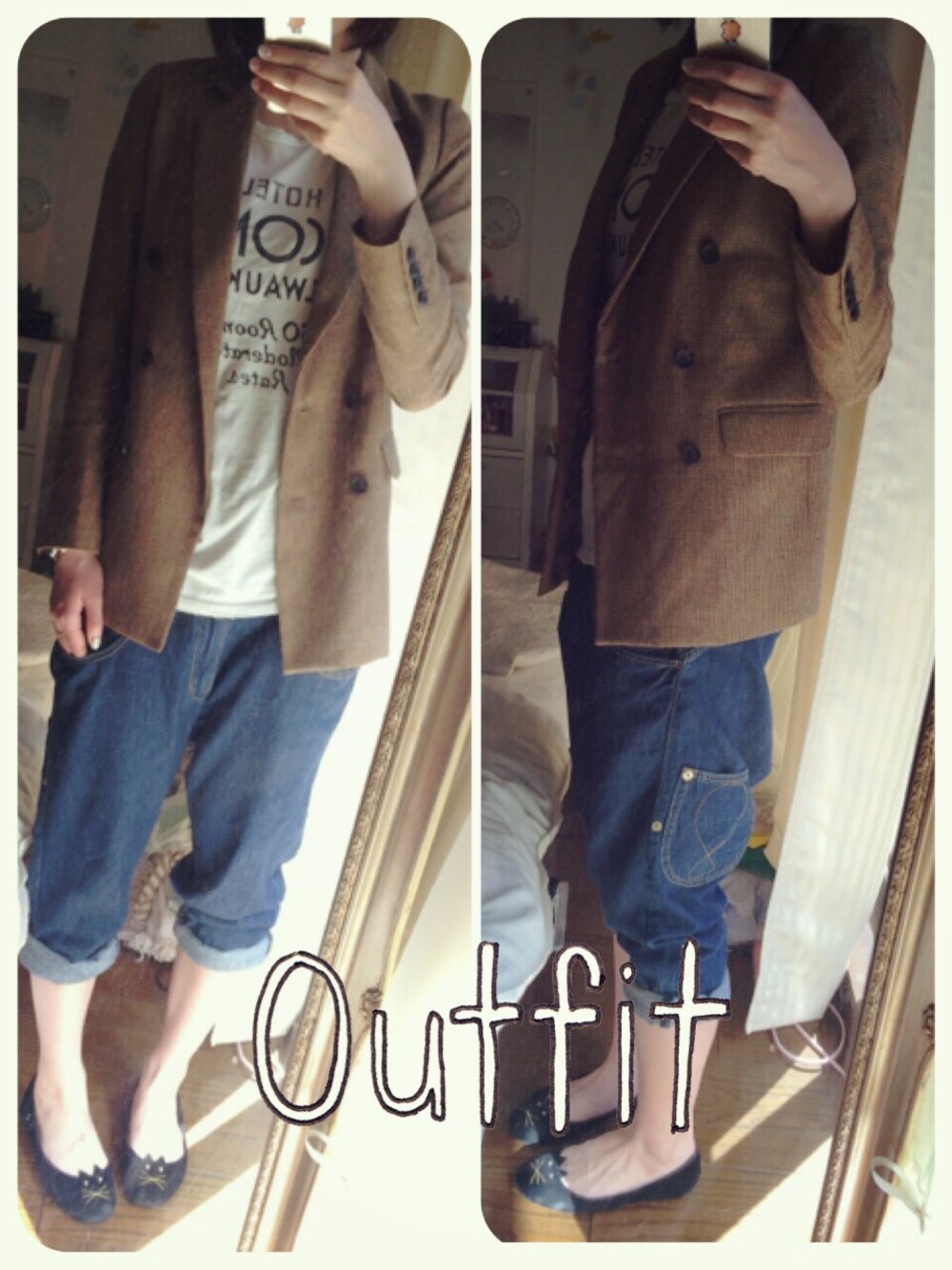 アウトレットにお買い物コーデ(๑❛ᴗ❛๑) ヴィンテージ風Tシャツは濡れた感じの質感がお気に入りです♪