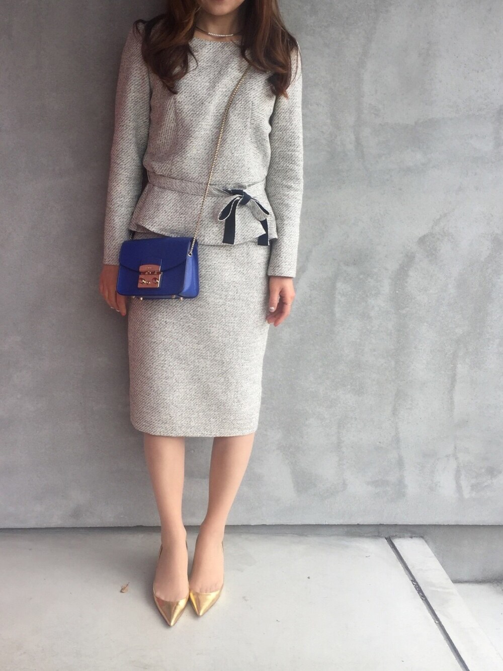 入学式コーデ😊✨ ペプラムトップスとスカートのセットアップなので上下いろいろ組み合わせられていいかも‼️😆 いつも見て頂きありがとうございます‼️