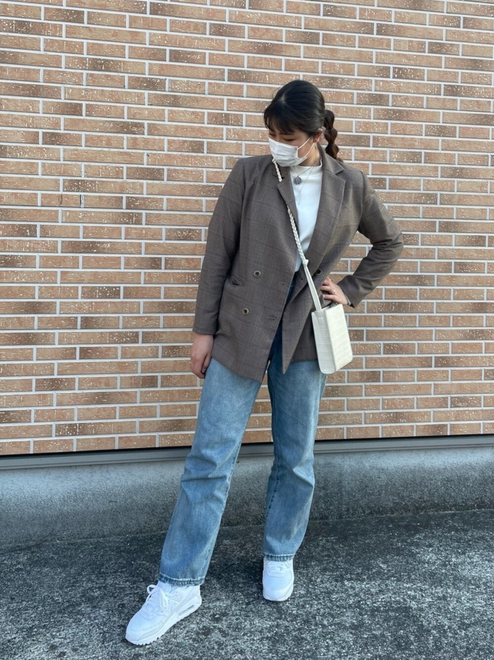 ずっと欲しかったNIKEの白スニーカー🤍 もうほんとにかわいい😭💐 ジャケットとクロコダイル柄のバックでカジュアルすぎないよう綺麗にまとめた!!