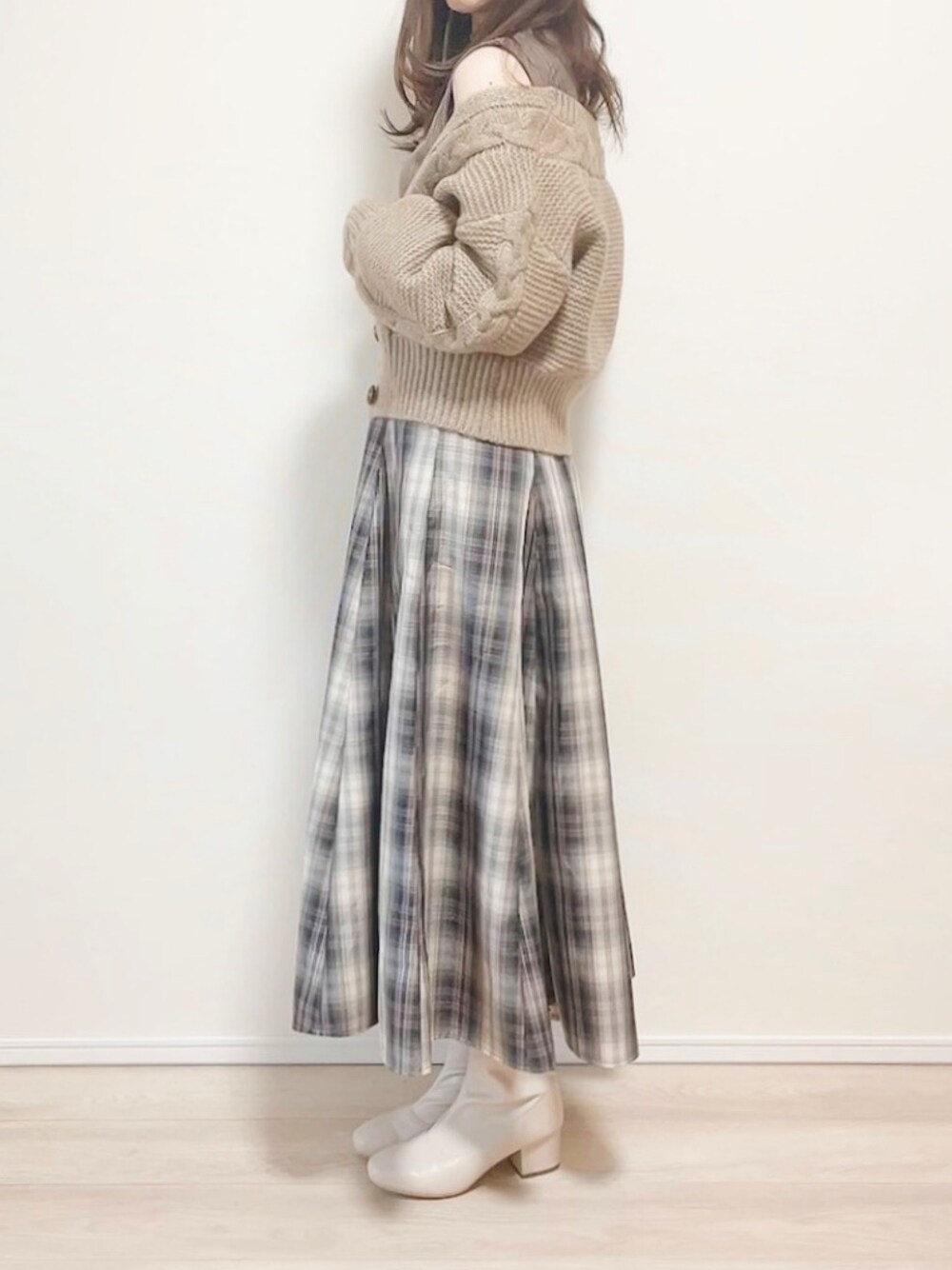 まりかお☺︎のカーディガン/ボレロ「ケーブルラインショートカーディガン」を使ったコーディネート