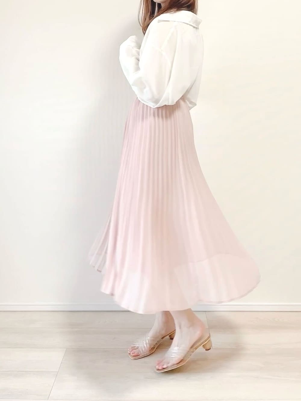 カジュアルな白シャツも シアー素材を選べばロングスカート合わせで ガーリーに着こなせるよ☺️