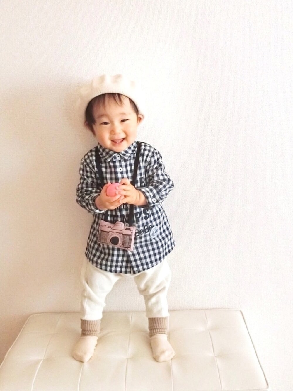 KOA🐨のシャツ/ブラウス「BeBe/二重織りギンガムチェックロゴプリント長袖シャツ」を使ったコーディネート