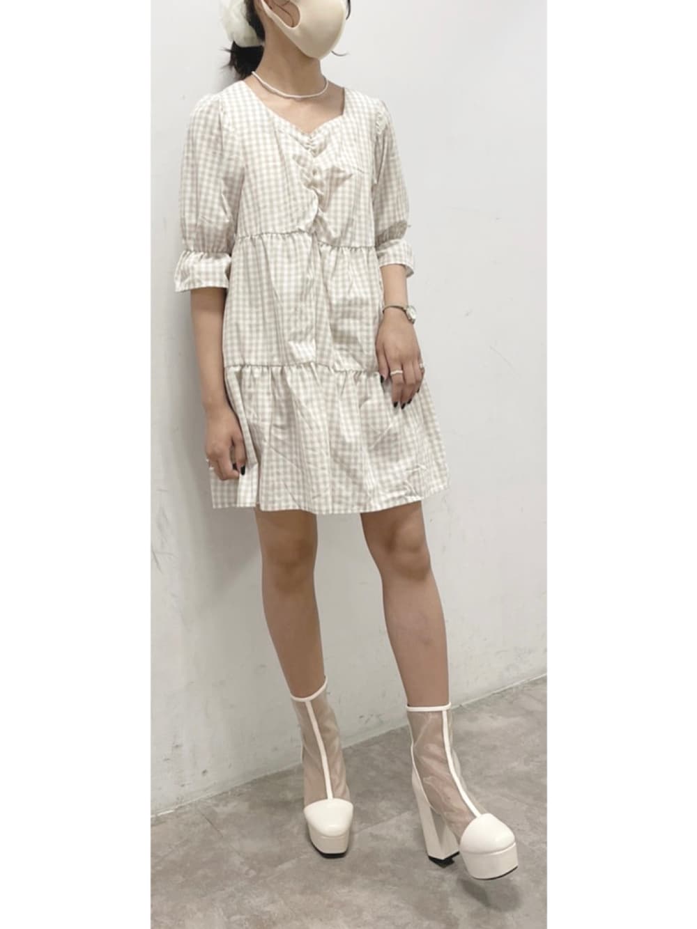 久しぶりのベージュコーデ📻🤍 しまむらとは思えない げきかわなお洋服と ブーツなのに夏らしい☀️ シアーブーツの相性が◎◎◎ ブーツは身長がグン!と 高く見えてスタイル抜群です🥴