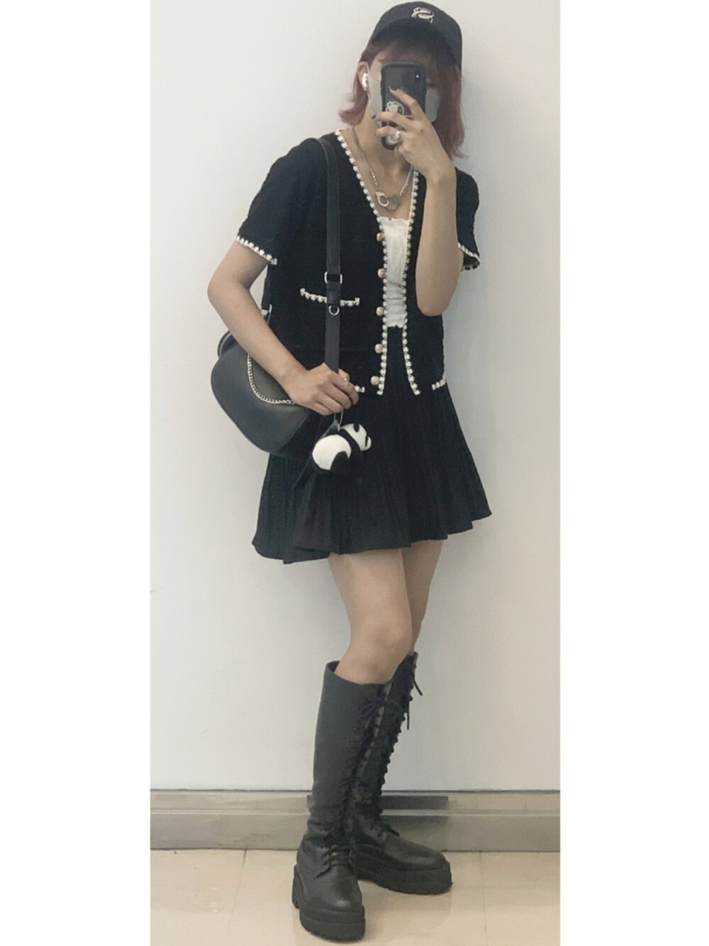 ブラックコーデ トップスとスカートは可愛く キャップとブーツでかっこよく 合わせました!!!! ここ最近で一番お気に入りのコーデ♡