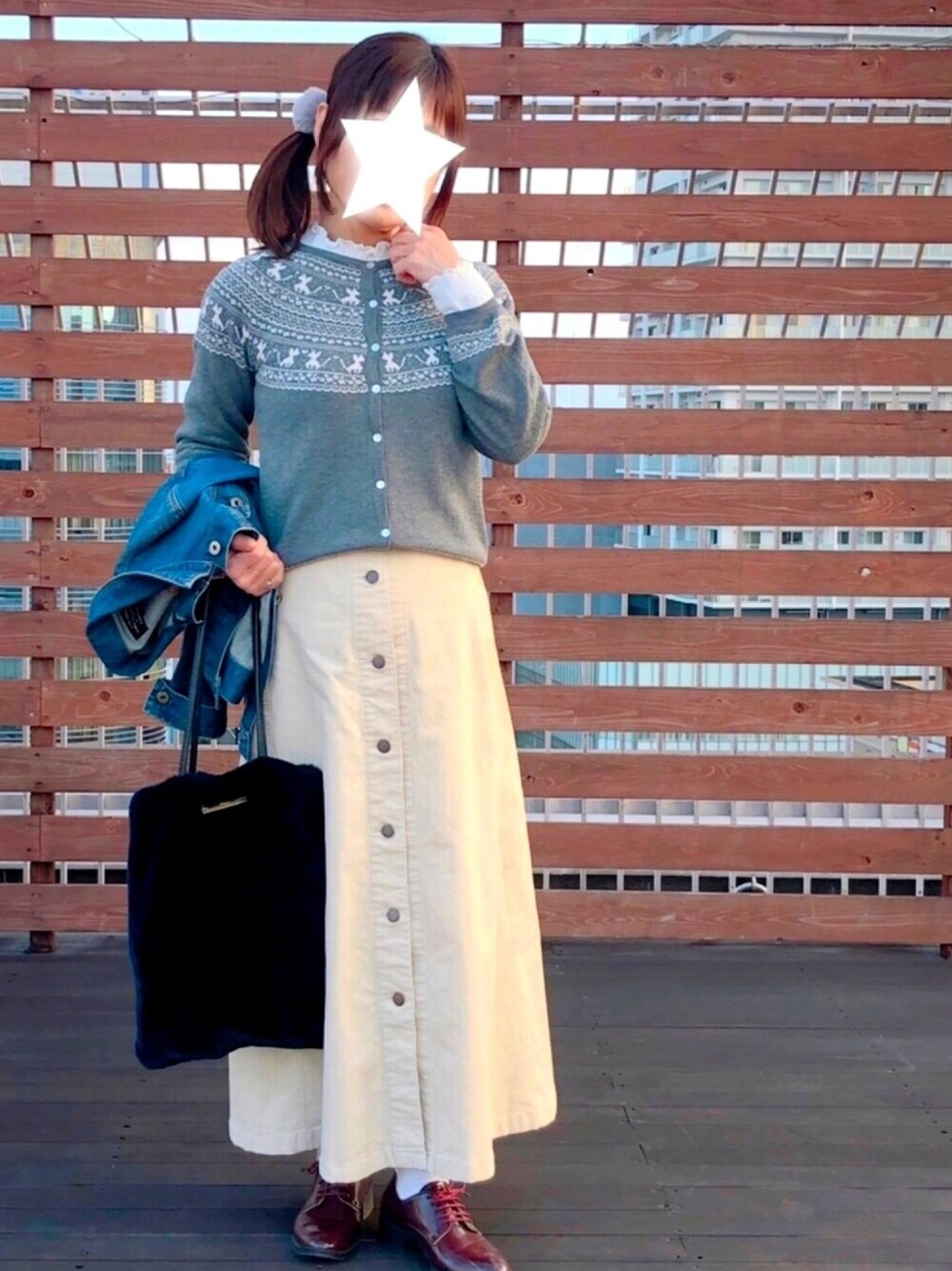 カーディガンXコーデュロイスカートXデニジャケ ショッピングに行った時のコーデ🛍 見た目よりあったかくて動きやすいのがポイント👌❣️ 昨日とは反対のカジュアルガーリー🎀