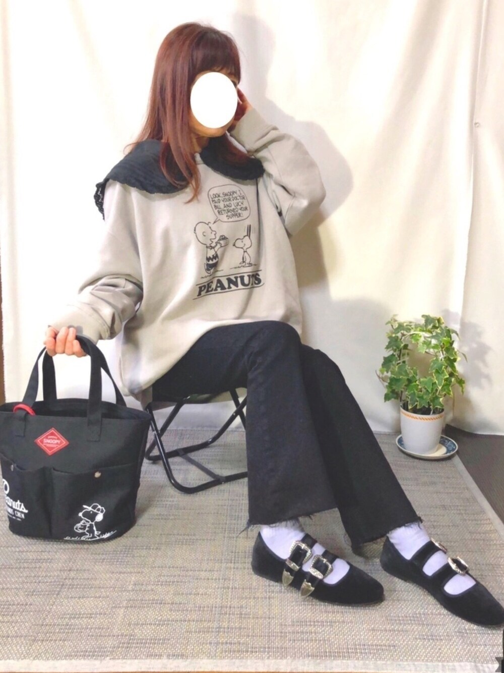 スウェットXビッグカラーのコーデ♡ 大好きなSNOOPYのスウェットと トートバッグを使って カジュアルガーリー💕 グレーXブラックに 差し色はパープルの靴下💜 ダブルバックルカンフーシューズは 今一番のお気に入りシューズ😍 閲覧ありがとうございました🙇🏻♀️ ケンさん❤️ ゆみこさん❤️ chicoちゃん❤️ りゅっくちゃん❤️ ひろっちゃさん❤️ dakuyanさん❤️ candyさん❤️ bikkoちゃん❤️ 前回の投稿に📁インありがとう ございました🎶❤️ とっても嬉しいです🥰