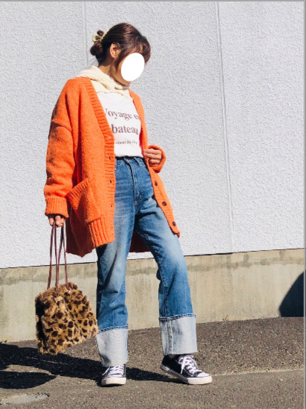 いつもご覧いただきありがとうございます🙇♀️ いいね❤️お気に入り➕ステキな📁インも とってもうれしいです🥰 🐣🐥🐣🐥🐣🐥🐣🐥🐣🐥🐣🐥 今日は ワンマイルコーデ♡ シンプル&カジュアル &ビッグシルエット🎶 ✨ビッグカーディガン ✨niko and...フレンチロゴロンT ✨フーデッドネックウォーマー ✨moussyロールアップデニム ✨ローカットスニーカー ✨レオパード柄ファーバッグ ✨バンスクリップ ロンTの下に タンクトップとヒートテック デニムの下に ニットレギンスとヒートテック靴下 かなり厚着してます🔥 フーデッドネックウォーマーでポカポカ✌️ ビッグカーディガン今年も活躍しそう😋