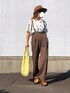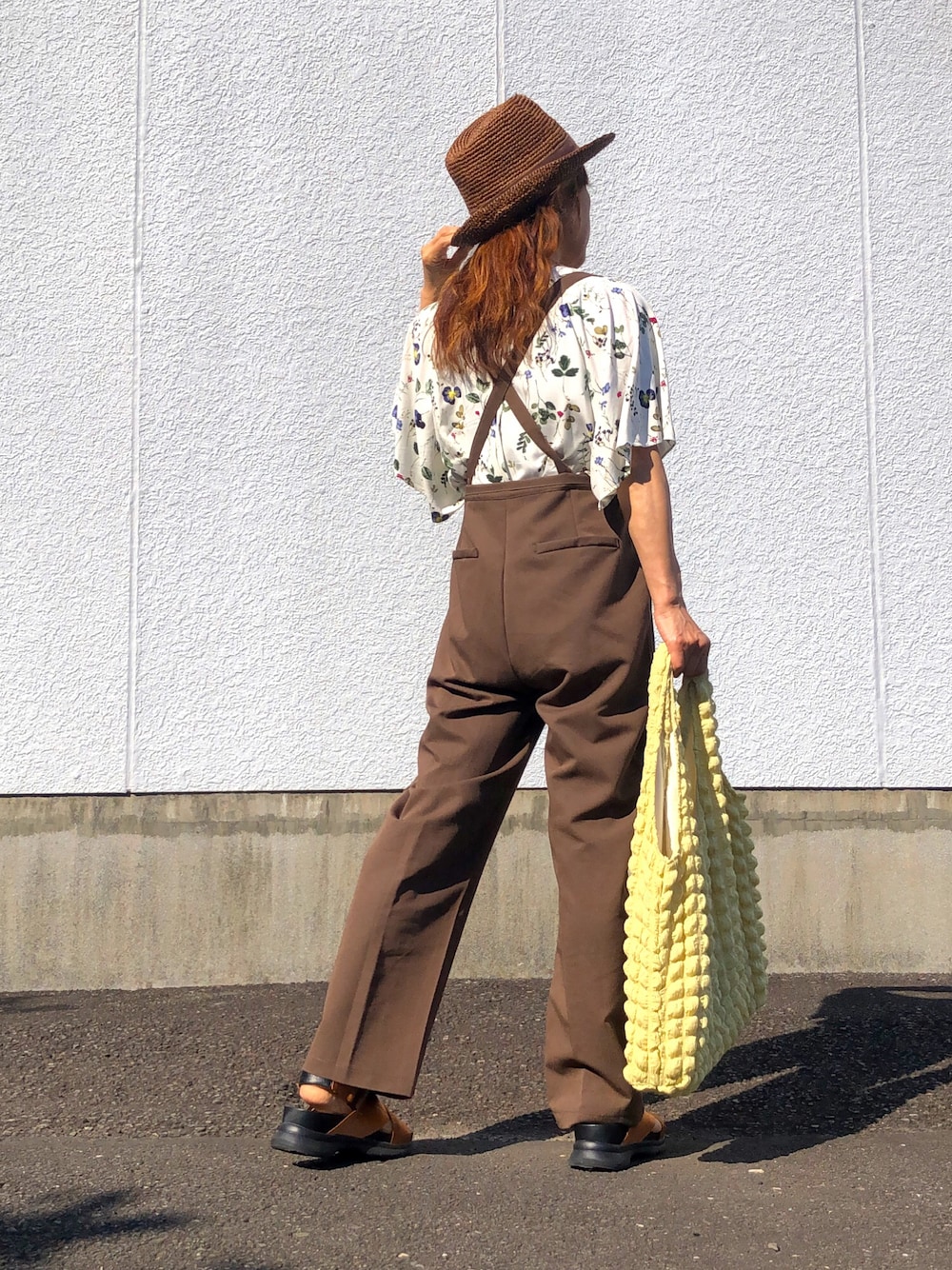 いつもご覧いただきありがとうございます🙇♀️ いいね❤️お気に入り➕ステキな📁インも とってもうれしいです🥰 🐣🐥🐣🐥🐣🐥🐣🐥🐣🐥🐣🐥 今日は ✨ハット ✨さらさらリラックスプリントブラウス ✨サスペンダー付きセンタープレステーパードパンツ ✨サテンクロススポーツサンダル ✨ポップコーンバッグ サラサラの花柄プリントブラウスに テーパードパンツも着心地良き👌 シンプルなカジュアルコーデに ハットとサテンスポサンの小物をプラス🤎