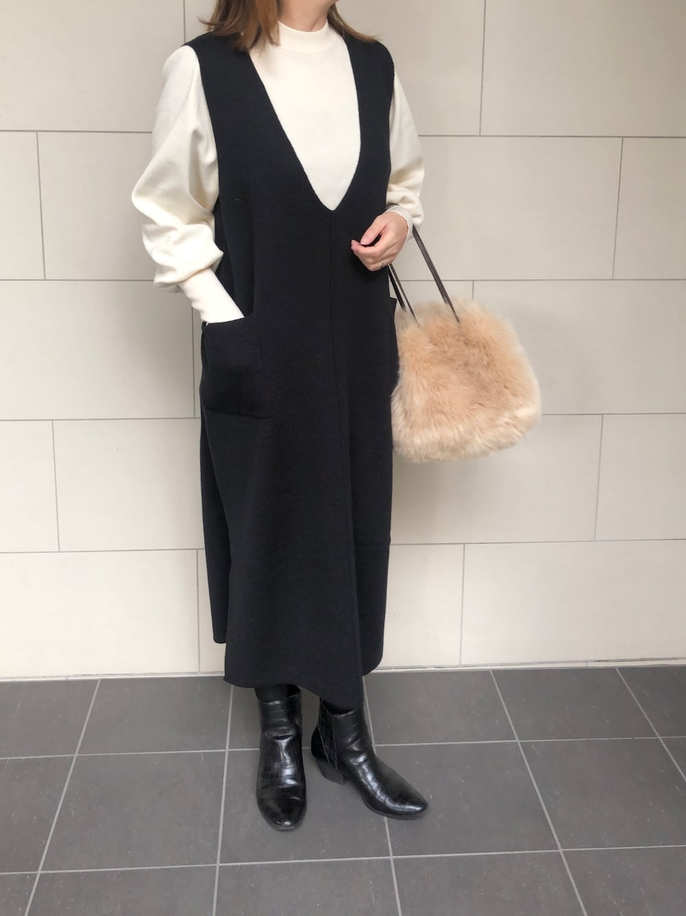 モノトーンコーデ♡ パフスリーブニットにニットジャンスカ、 珍しくちょこっと可愛いめ☺︎