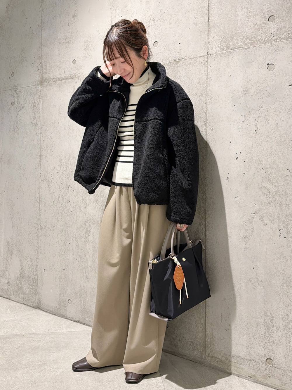 高めのスタンドカラーがポイントの、ボアブルゾンです。 柔らかで表情豊かなボアは、真冬の肌寒い時まで活躍し、軽くラフに着ていただけます。 スタンドカラーを立てても、襟を寝かせても表情が変化し、若干丸みのあるフォルムがこなれ感を演出。 カジュアルなスタイリングにぴったりのアイテムです。 今回は、ボーダー柄をアクセントにした、キレイめカジュアルコーディネートです。 パンツはウエストがゴム仕様になっており、リラックスして穿いていただけます。 ぜひ、お試しください! ============================ 商品の詳細や在庫状況等につきましても お気軽にお問い合わせくださいませ。 URBAN RESEARCH Sonny Label 錦糸町パルコ店 東京都墨田区江東橋4-27-14 パルコ2F TEL:050-2017-9276 営業時間:10:30〜21:00 ーーーーーーーーーーーーーーーーーーー Sonny Label 錦糸町パルコ店 LINE接客始めました♪ 商品についてのお問い合わせやコーディネートのご相談など、お気軽にLINEでご連絡くださいませ。 『@845nacxx』で検索すると LINEのお友達追加が可能です。