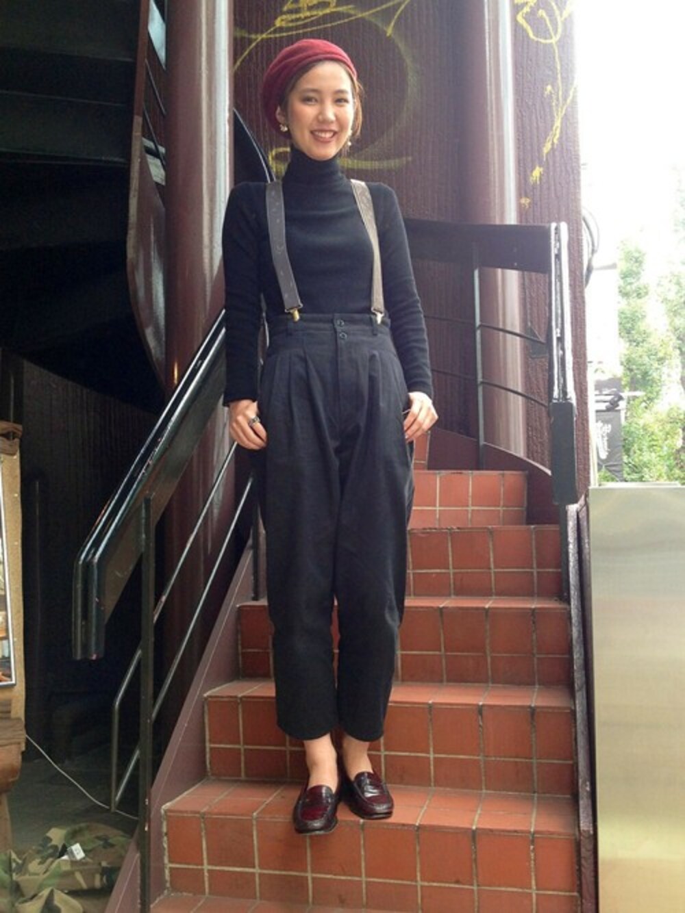 サスペンダーに初挑戦! シンプルなコーディネートのとき、小物があると便利ですね!