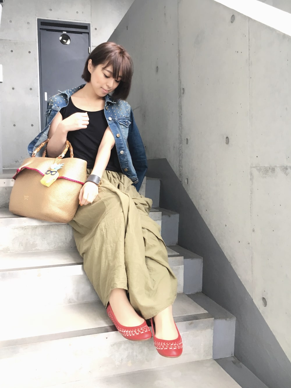 マロンケーのデニムジャケットを使ったコーディネート