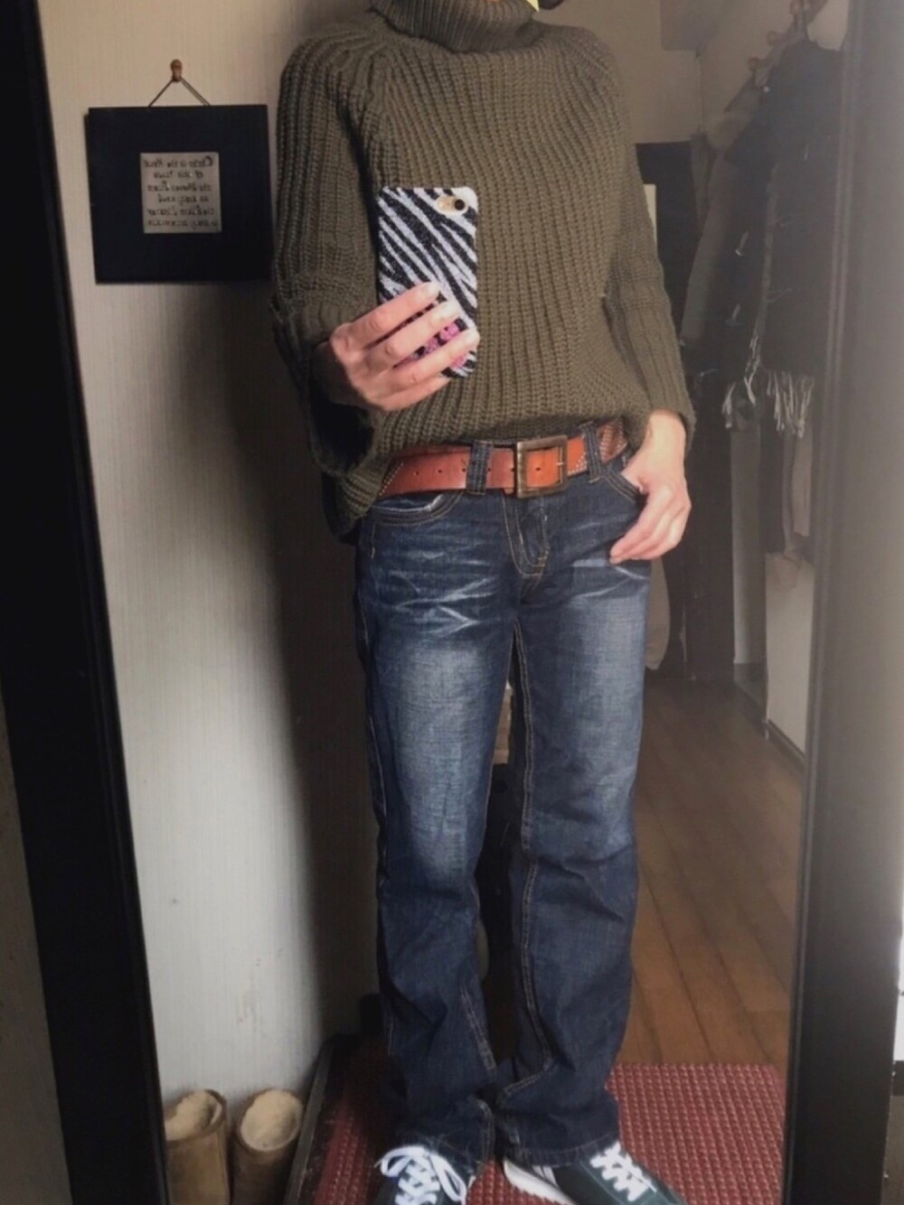 おはようございます😃 少〜しだけ暖かくなってきたから、 車での外出はもうアウター要らず。 厚手のローゲージタートルであったか♪ お色は安心のカーキww