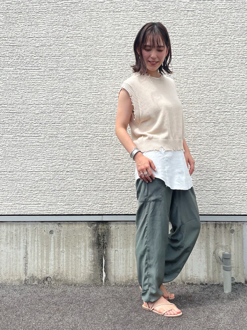 夏コーデ◎ ダメージニットとカーゴの組み合わせがツボでございます◎かわいい〜。