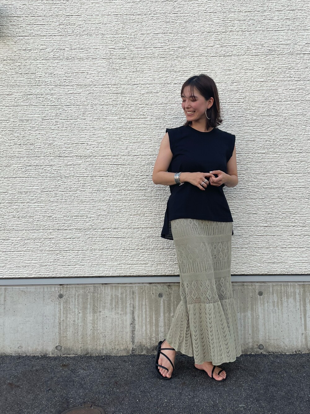 HIRANOのサンダル「アシンメトリーサンダル」を使ったコーディネート