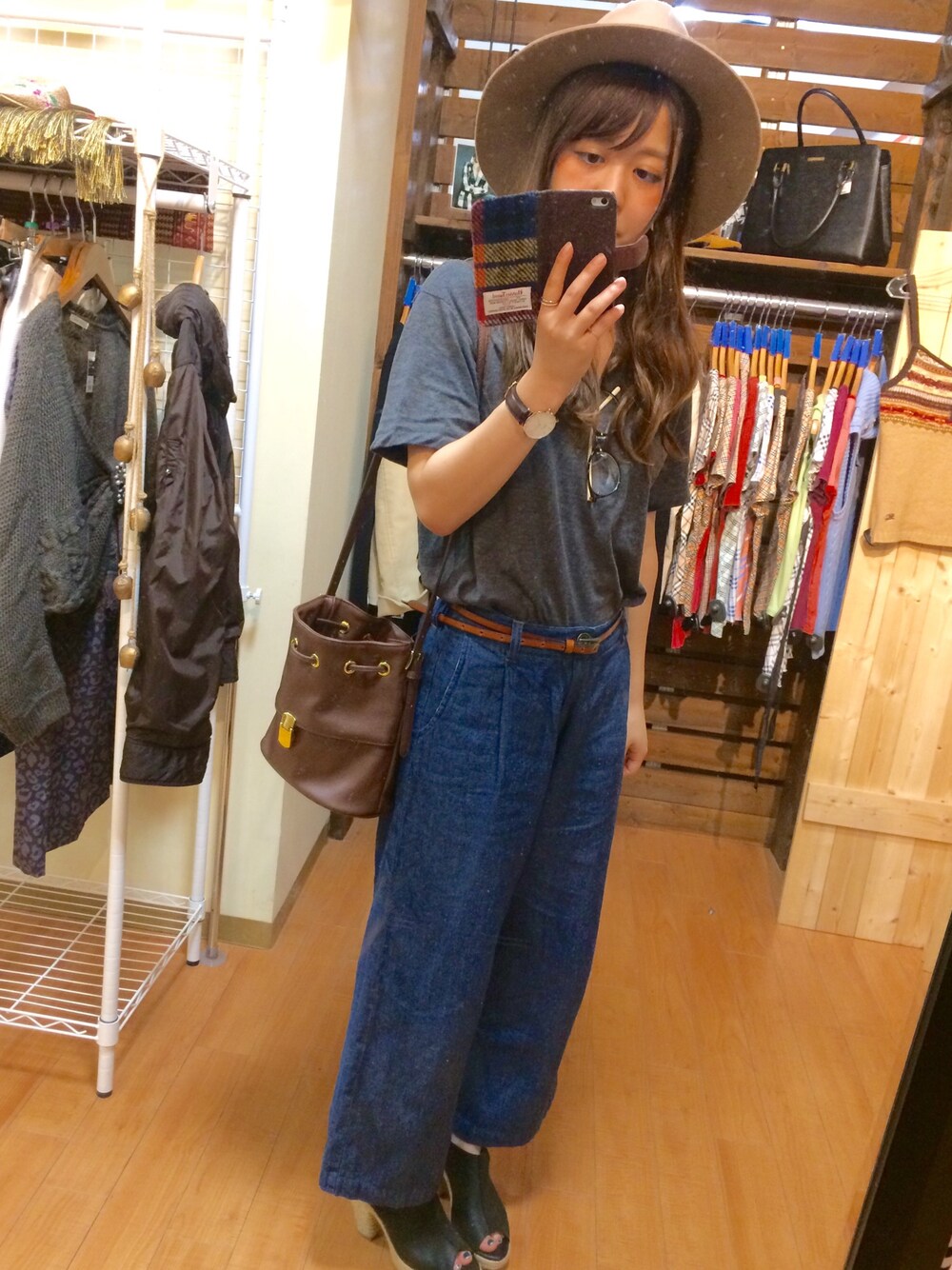 GUのパックTにワイドパンツ♡ アクセサリーはゴールド系で少しでも大人っぽくなるように… ハットはやっぱりかぶってしまいます。🎩