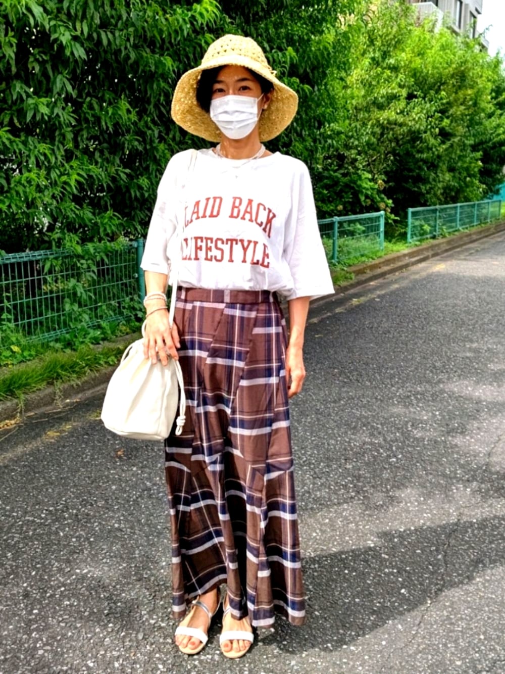 新作コーデ🌈 先日、購入した秋色スカート🍁 マーメイドラインが上品です✨ トレンドのロゴTシャツを合わせてカジュアルダウン。 秋を先取りしつつ、 小物は夏らしくホワイトでまとめました😊 playファッションで、残りの夏を楽しもう❗