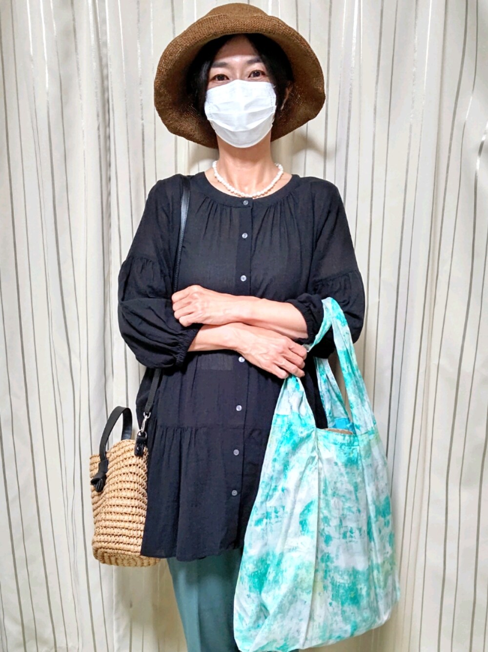 夏おさめ🍧 真夏日でした☀️ 夏アイテム達👒を身につけて。 麦わら帽子 かごバック タイダイ柄エコバック 🟤帽子&かごバック 🟢カラーパンツ&エコバック 色味を合わせました。 帽子とエコバックは去年の物ですが、 昭島店の店長さん&副店長さんに選んでいただいた 宝物アイテムです✨ 大事に使っています。 夏アイテム達ありがとう! また来年🤗🌈
