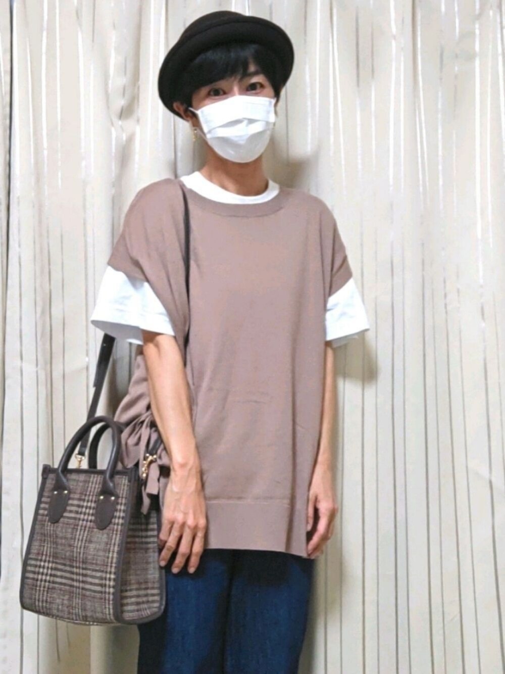 ベスト着回し🍁Tシャツ なぜ着替えたかと言いますと、、、 チェックのスクエアバック✨ スタジオクリップで一目惚れしてしまいました🥰 スタジオクリップの店長さん グローバルワーク(系列店)のスタッフさんにも相談して、 購入を決定!! 服をシンプルカジュアルに バックを主役にしました🤗