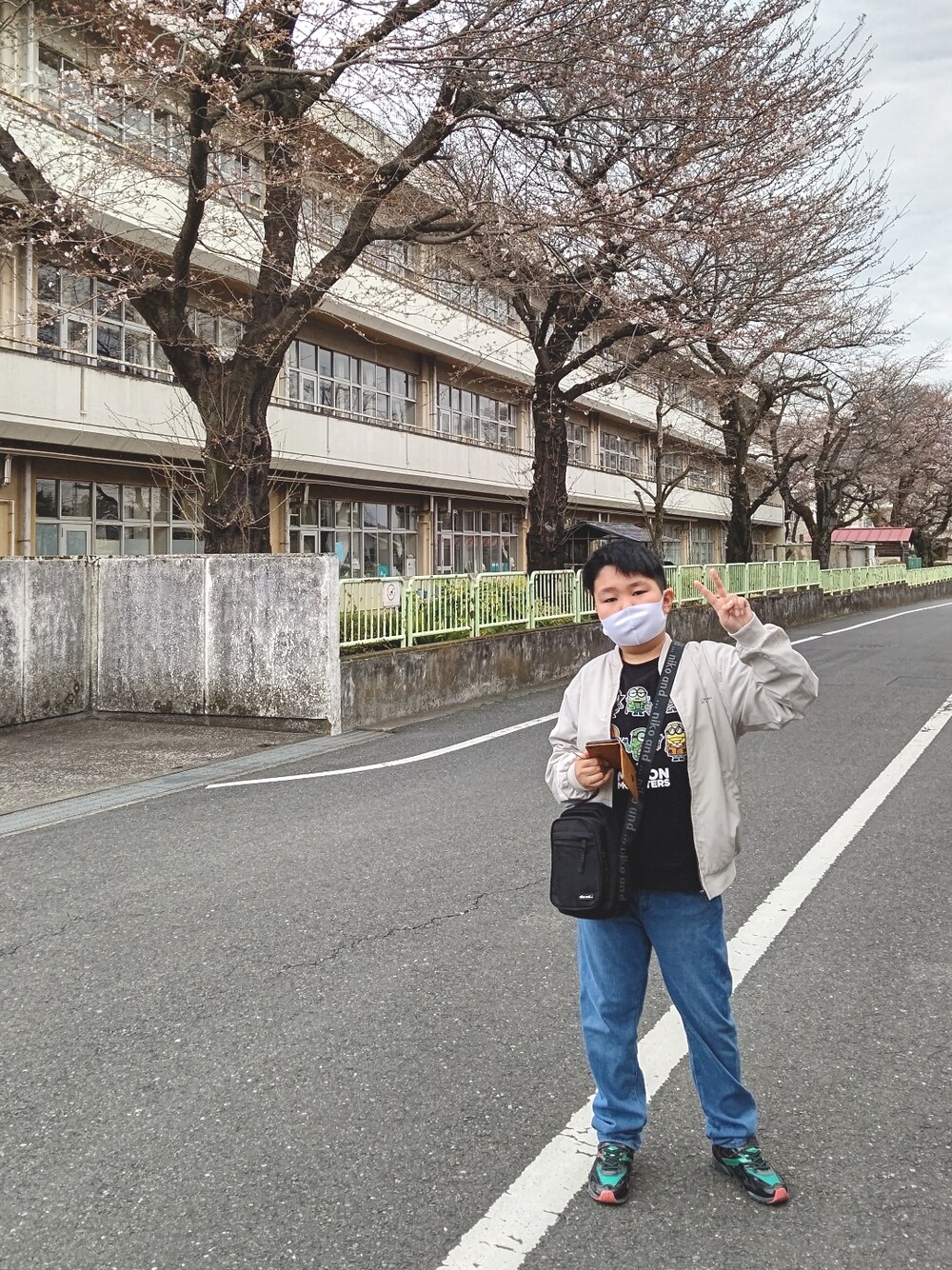 最後のメッセージ🌸 卒業式を終えて、まだ名残惜しい様子。 一緒に小学校を見に行ってきました。 土日はグラウンドを解放してる日があり、 1階の教室だったので外から眺めると、 卒業式当日の先生からの応援メッセージが残っていました。 「自信を持って前へ」 息子🧒 最後に教室に向けて感謝の挨拶 「ありがとうございました!」 前向きな笑顔のピース😊✌️ 桜が開花していました🌸