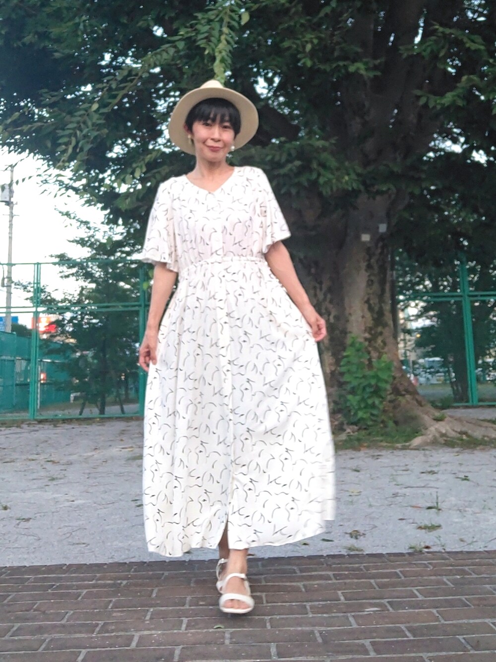 30年前は女子だったよコーデ 白ワンピース💖買ってしまいました✨ 盆暮れ正月ナシ。祝日も出勤。 年間通して週休2日のみ。 そんな自分にご褒美三昧♥️(私服着る日数少ないのに) アート柄がモードな雰囲気のワンピース。 サンダルはスクエアトゥで。 現在は超大人女子のため、 甘くなり過ぎない柄やデザインをチョイス! 今日、祝日はママさんヘルパーさん達がお休みのため、サ責全員フル稼動で現場カバー! (サ責∶簡単に言うとヘルパーのボス) 炎天下の自転車移動でクタクタになりながら食べたガリガリくん。 アタリが出たー!😆🎯 元気チャージでルンルン帰宅🎵 着るしかないでしょワンピース! (写真撮って終わり🤣でも大満足💕)