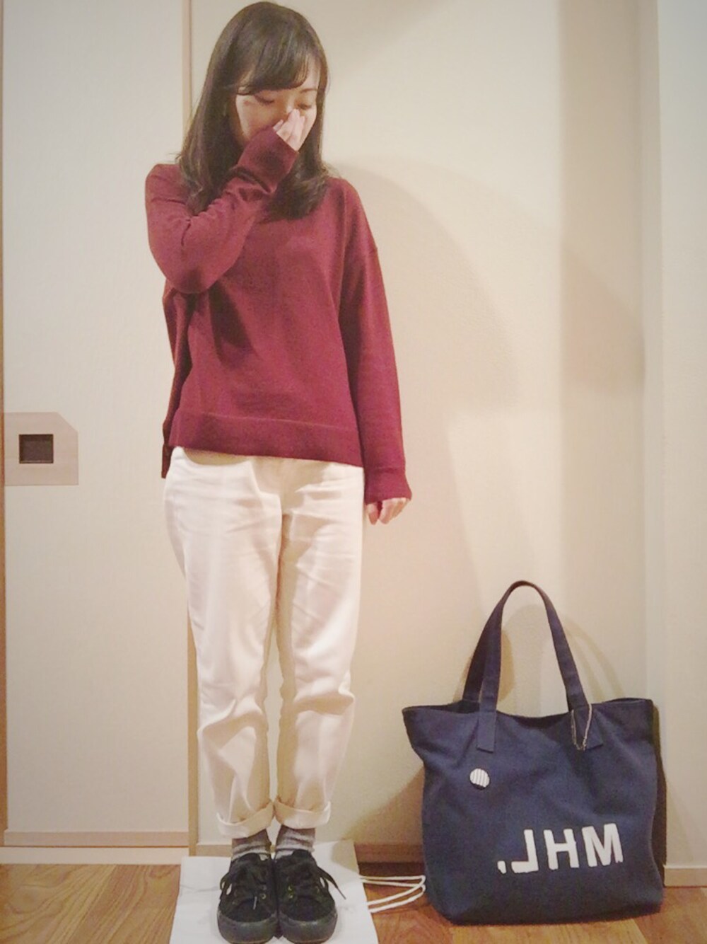 nokkaのニット/セーター「12ゲージキノウタートルプルオーバーロングスリーブ 707011」を使ったコーディネート