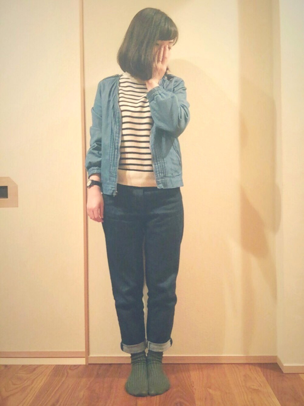 今日は寒かったので春ニット(^ω^) そしてザ・シンプル!!いつもことか笑 ジーパン久しぶりに履いたかな? この濃さやっぱり使いやすい☺️ 靴下がカーキなのがワンポイント!色の具合伝わるかな? イヤリングお気に入りの出しましたよーん\(^o^)/ ここのボタン屋さんほんとにお気に入りなんです(^ν^) なんとか出してるイヤリングや指輪もそこの♡ またボタン選んで作りに行きたいなぁ😍 あっあと小窓にななずぐりんてぃーの生チョコ食べたのでのせました(^ω^)美味しくて幸せだった(^^)