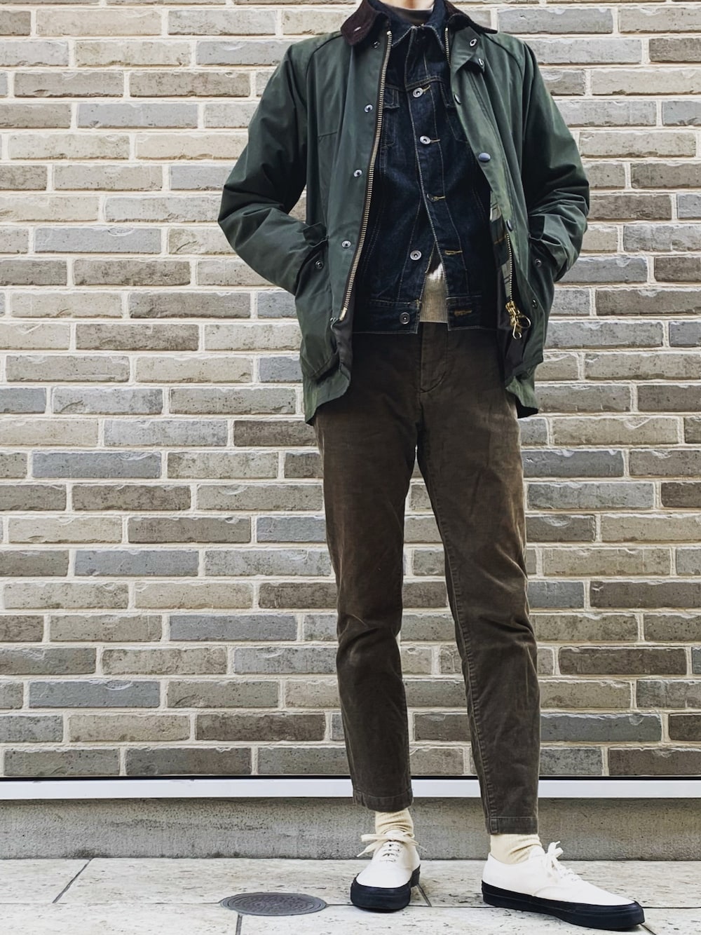 デニムジャケットとバブアーのレイヤード。 instagramも是非宜しくお願いします。 Instagram▶︎ok.a02