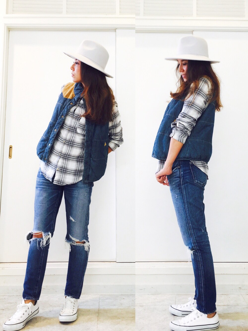 かなり昔のデニムダウンベスト 今年ロンハーマンからメンズで出てるよね🎶 あっちの方が断然可愛いけど😅